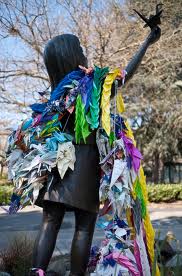 At Figment DC, we’ll be folding cranes to send to Japan. Like Sadako, we’ll be recycling paper to make our cranes, cutting squares of paper from magazines, outdated maps, old wrapping paper, whatever we can find, and whatever you choose to bring. For younger children, we’ll have some cranes and easier-to-fold birds, as well as stickers and markers to decorate them. And we’ll have some people putting the birds on strings.